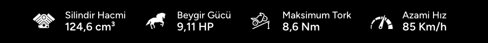 Güçlü Motor ile Eşsiz Sürüşler RESA 125’te 124,6 cc hacimli 9,11 HP güç ve 8,6 Nm tork üretebilen motoru ile RESA 125 sizi eşsiz bir deneyimle tanıştırıyor. Gücü ve konforu, keyifle birleştiren RESA 125 ile yolların yeni vazgeçilmezi olun.